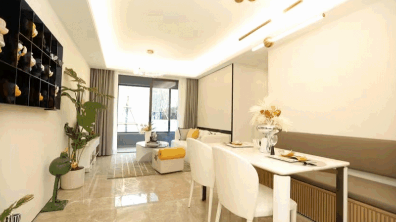 沙盘区与湖居样板间的神秘面纱隆重揭晓,样板间的简洁、轻奢、明快,加上白色和流行色的组合让现场嘉宾真正感受到杭派精工住区的品质与匠心。