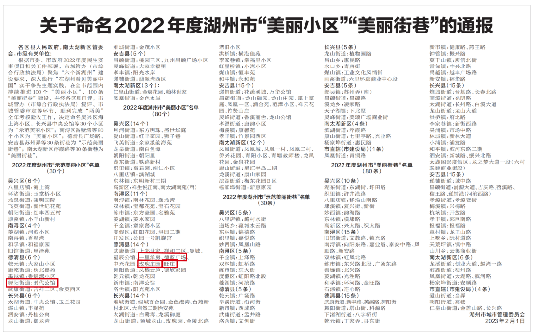 星光不负赶路人。近日,浙江湖州市党媒《湖州日报》公布2022年度湖州市最美小区评选结果,德信服务在管5个项目荣耀上榜。其中:时代公馆,被评为级别最高的“湖州市示范美丽小区”。一里洋房、德蓝广场、玫瑰庄园、旺庄四个小区被评为“湖州市美丽小区”。